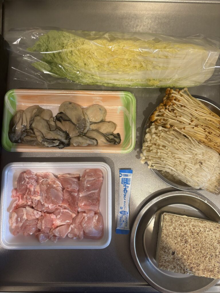 - 牡蠣:100g(今回は安かったので追加。魚介を入れると出汁の深みが変わります)