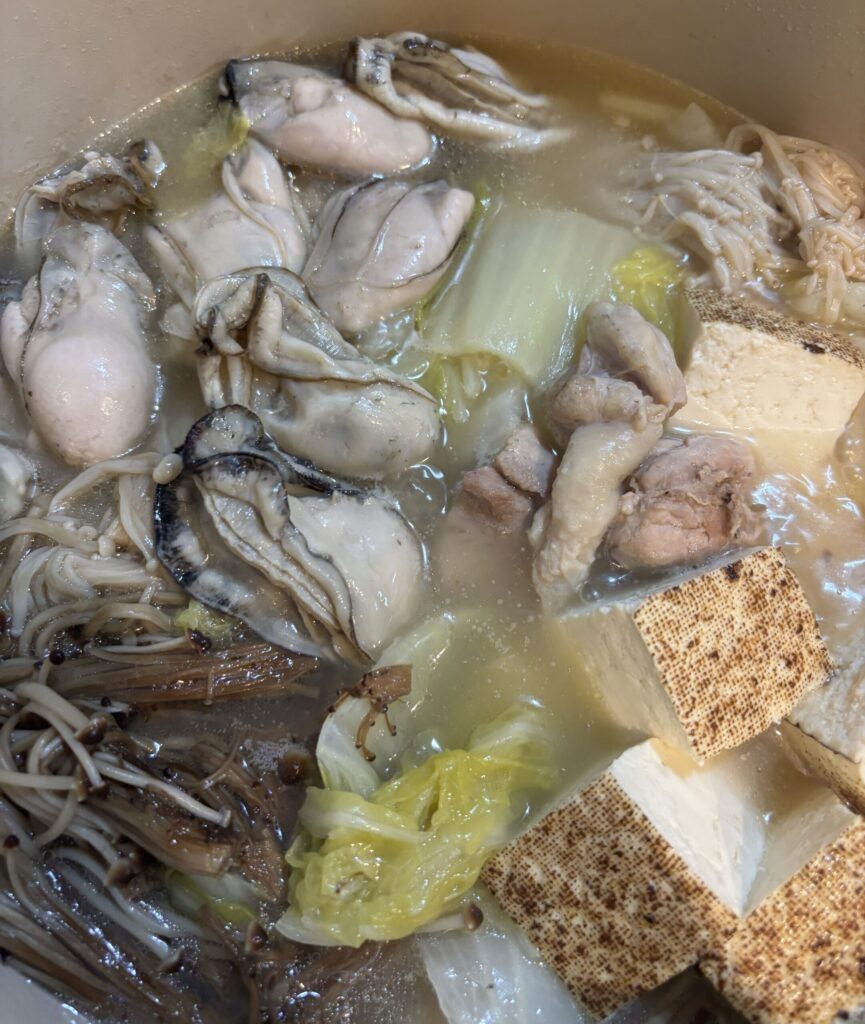 - 食べる直前は豆腐と牡蠣を入れて5〜10分加熱するだけ