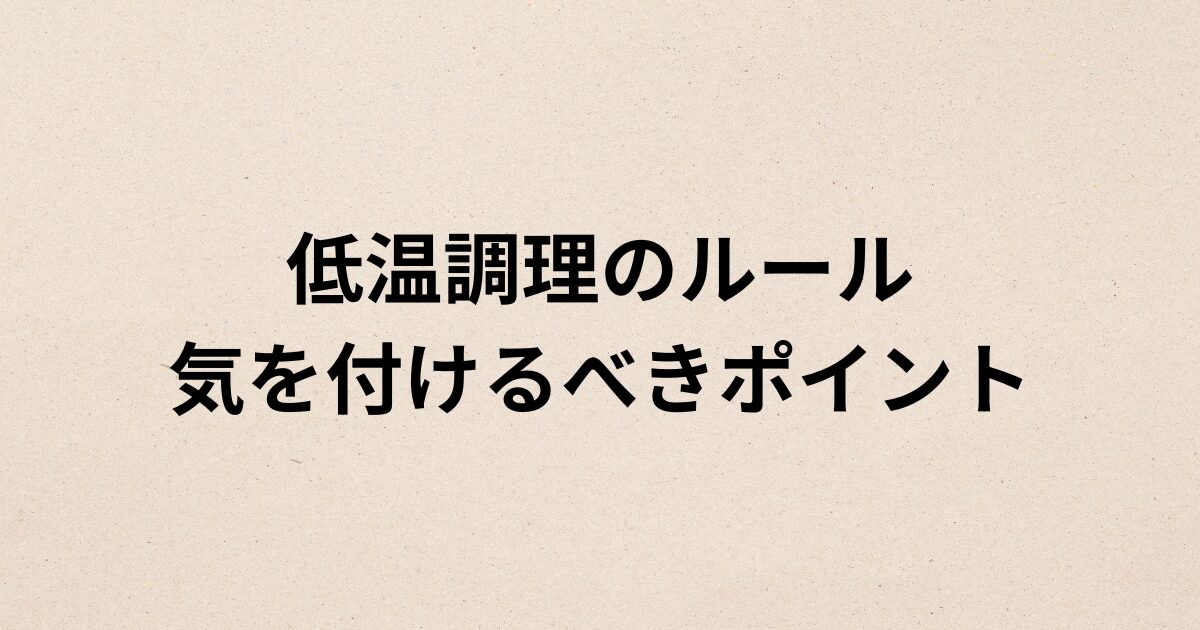 低温調理は、便利さと引き換えに守るべきルールが明確な調理法です。