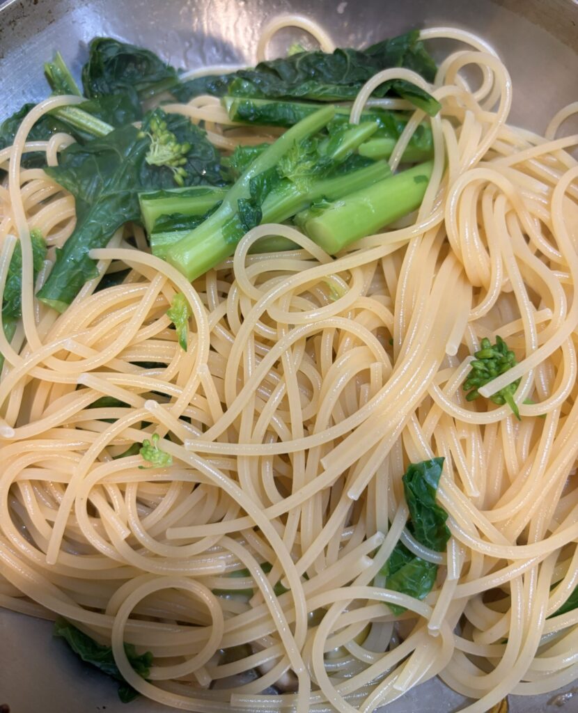 • 菜の花はパスタと一緒に茹でる